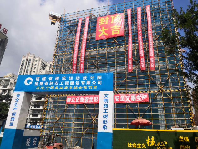 (寧德鹽業(yè)商務綜合樓在建工程主體結構封頂圖一)