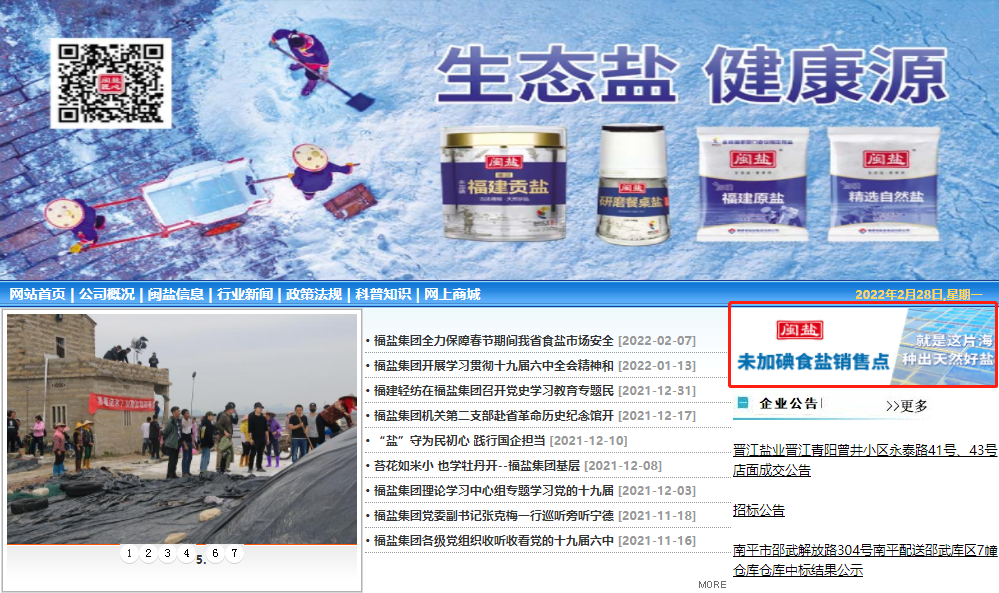 福鹽集團(tuán)嚴(yán)把生產(chǎn)質(zhì)量關(guān),強(qiáng)化未加碘小包裝食鹽渠道管理,確保網(wǎng)點(diǎn)布點(diǎn)合理、管理科學(xué)可控,并加強(qiáng)食鹽科普宣傳,提高人民群眾科學(xué)用鹽意識(shí),滿足未加碘小包裝食鹽消費(fèi)需求。福鹽集團(tuán)作為福建省唯一依法從事食鹽生產(chǎn)、銷售一體化的省屬國(guó)有大型企業(yè),履行好福建省未加碘小包裝食鹽專供職能的同時(shí),多措并舉保障特殊人群對(duì)未加碘小包裝食鹽的消費(fèi)需求,切實(shí)解決群眾急難愁盼的問(wèn)題,彰顯國(guó)企擔(dān)當(dāng)!