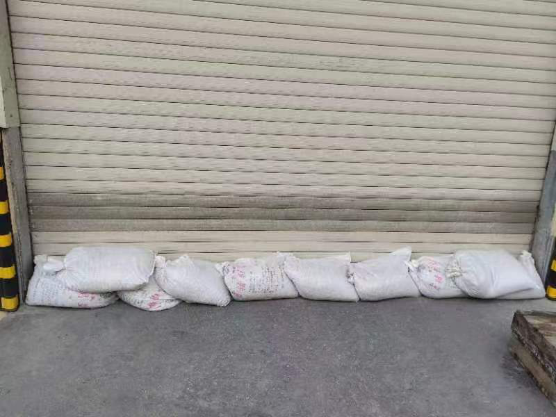 (泉州鹽業(yè)嚴(yán)格落實(shí)防汛值班和領(lǐng)導(dǎo)帶班制度,及時(shí)做好辦公綜合場(chǎng)所、舊鹽務(wù)所、出租房產(chǎn)及車(chē)輛防御臺(tái)風(fēng)等安全巡查隱患排查,全力以赴做好各項(xiàng)防御臺(tái)風(fēng)工作。圖為泉州鹽業(yè)配送中心倉(cāng)庫(kù)準(zhǔn)備應(yīng)急防汛沙袋,對(duì)倉(cāng)庫(kù)卷閘門(mén)進(jìn)行防水防堵。)