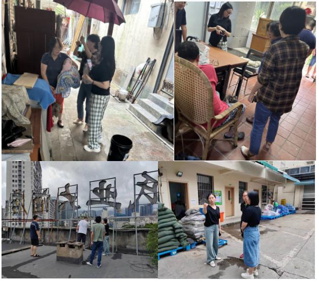 根據(jù)福建輕紡做好第5號臺風(fēng)“杜蘇芮”防御工作部署,金皇貿(mào)易黨支部第一時間響應(yīng),對落實落細防臺風(fēng)各項工作措施的作出安排布置,公司領(lǐng)導(dǎo)第一時間深入一線部署防汛防臺工作,要求各單位迅速進入備戰(zhàn)狀態(tài),把生命財產(chǎn)安全放在首位,筑牢安全防線。黨員干部主動挑重擔(dān)、當(dāng)先鋒,強化應(yīng)急職守,加強隱患排查,不留死角,抓細抓實各項臺風(fēng)防御措施的落實,積極做好各項應(yīng)急處置準備。權(quán)屬金皇物業(yè)公司對大廈及周邊所屬房產(chǎn)安全隱患進行地毯式排查,循環(huán)提醒各業(yè)主單位及承租戶做好安全防范,準備好沙袋、塑料圍擋、雨衣、手電、食品等應(yīng)急物資。針對金皇大院內(nèi)易澇地帶低樓層困難住戶,黨員領(lǐng)導(dǎo)干部帶頭反復(fù)登門宣傳,做通思想,順利將3戶住戶轉(zhuǎn)移安置到安全地方作為臨時居住場所,并提供必須的生活保障物資。權(quán)屬海峽紙業(yè)根據(jù)多年來應(yīng)對臺風(fēng)經(jīng)驗,多次到所屬酒店、倉庫等重要場所進行安全隱患排查,督促承租戶備足防汛物資和救援應(yīng)急力量,確保承租戶人身財產(chǎn)安全。