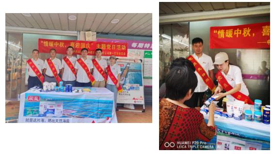 漳州鹽業(yè)黨總支開(kāi)展“情暖中秋,喜迎國(guó)慶”主題黨日活動(dòng),各黨支部黨員發(fā)揮先鋒模范作用,堅(jiān)持?jǐn)[攤設(shè)點(diǎn)、走村入戶入店巡訪市場(chǎng)、加強(qiáng)宣傳,了解餐飲、食堂、農(nóng)村人群、城市人群閩鹽食用情況,結(jié)合濃厚的節(jié)日氛圍,開(kāi)展品牌宣傳活動(dòng),宣傳科學(xué)用鹽的健康理念。
