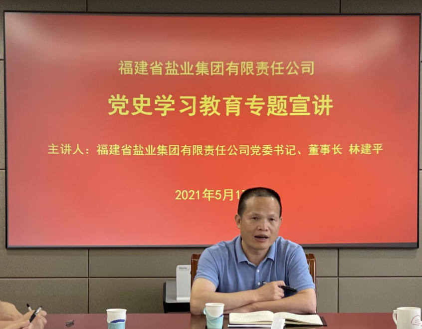 5月17日下午,福建省鹽業(yè)集團(tuán)有限責(zé)任公司黨委書(shū)記、董事長(zhǎng)林建平在公司八樓會(huì)議室作黨史學(xué)習(xí)教育專題宣講,公司中層以上干部、黨員、入黨積極分子等共36人參加。